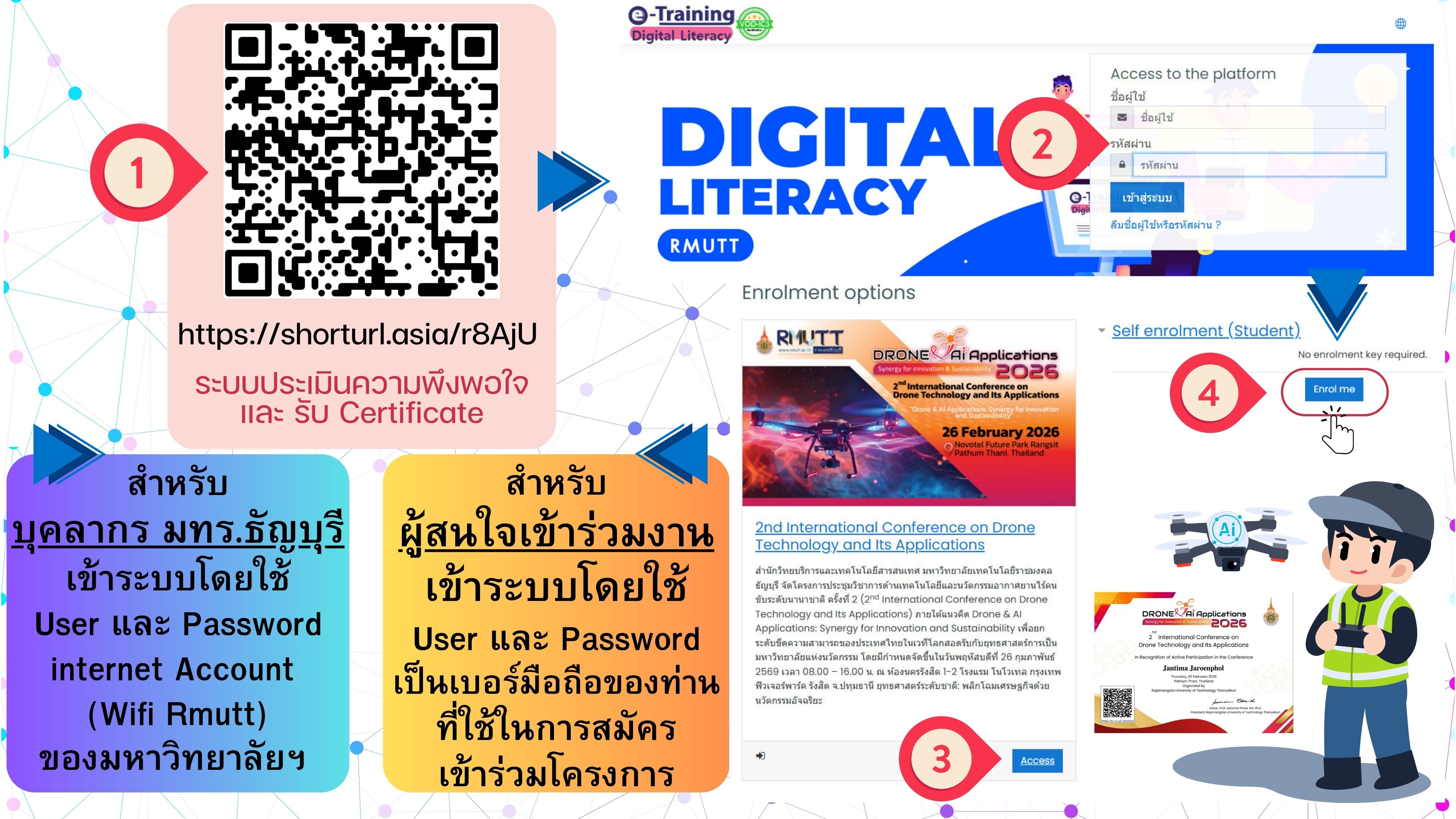 อบรมฟรีสำหรับบุคลากร มทร.ธัญบุรี และมีใบประกาศนียบัตรรับรองผ่านการฝึกอบรมเมื่อเข้าอบรมครบ 80% จากกำหนดการทั้งหมด